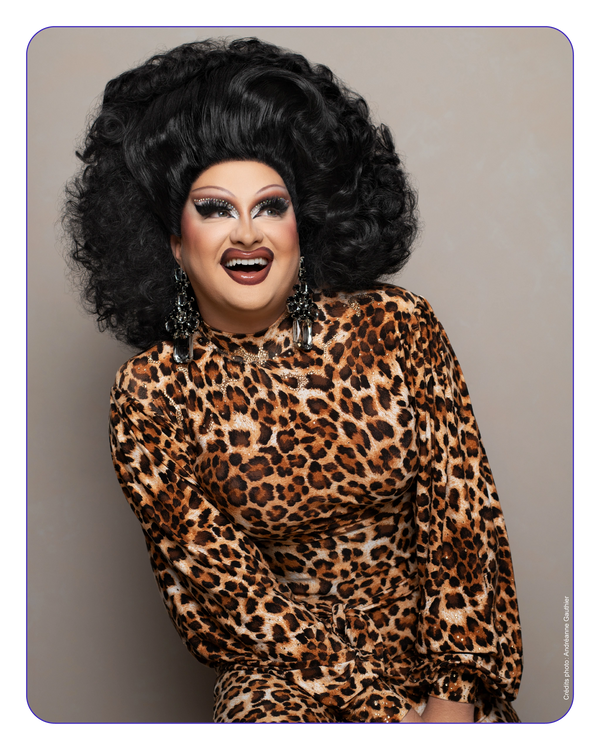 Mona de Grenoble, humoriste et drag queen de type «matante sur le party» a la sacoche bien pleine de talents, dont l’animation, le stand-up, le roast, le crowdwork et l'improvisation.